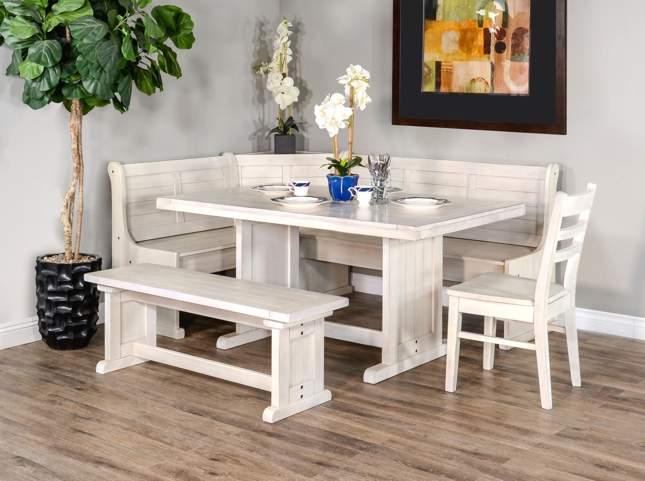 The Bayside Breakfast Nook is beautifully crafted with mahogany solids and veneers that accentuates its beauty. The versatile storage benches are reversible to fit any space blending style and function.