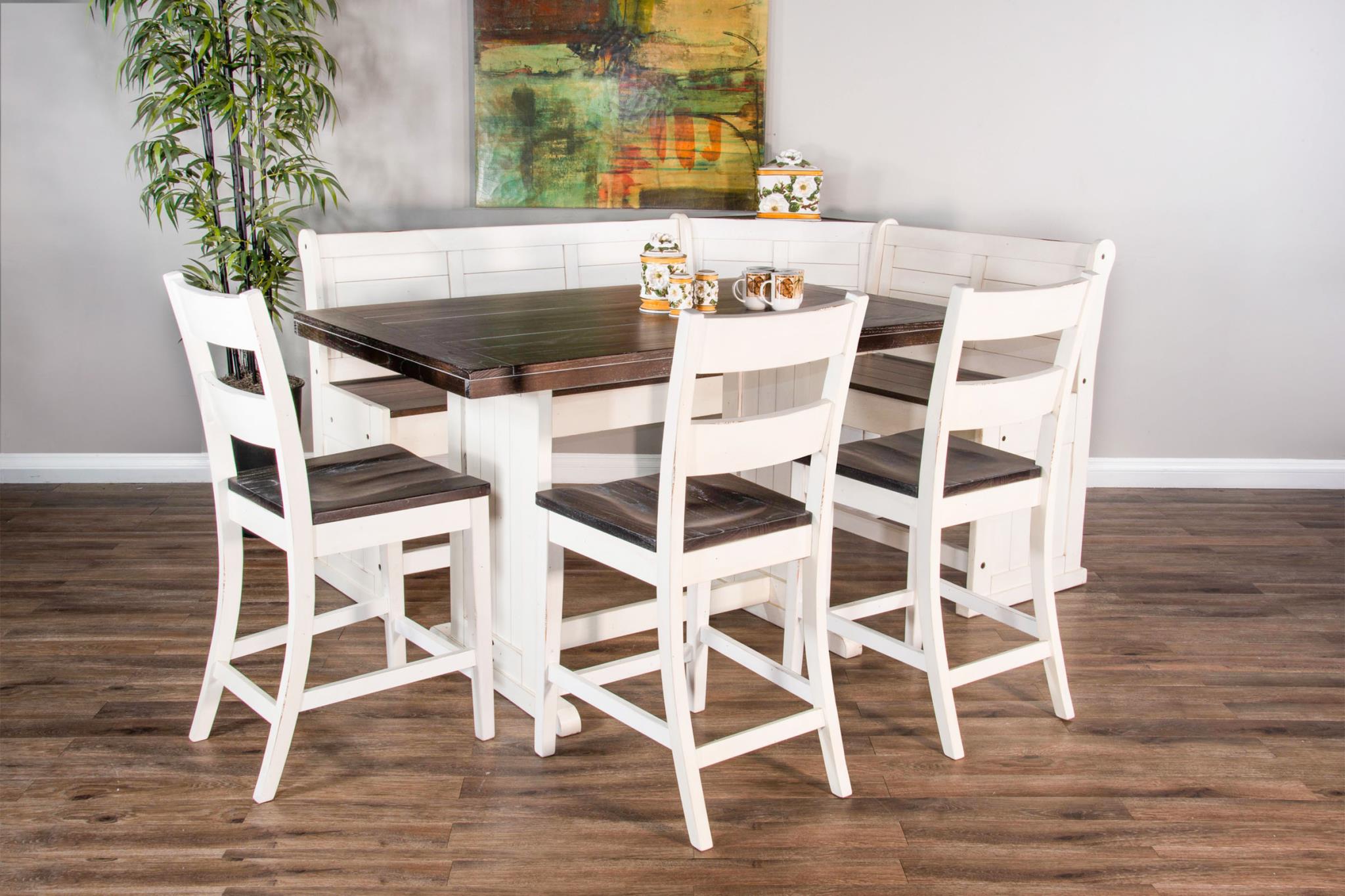 The Carriage House Breakfast Nook is the perfect choice for counter height seating. Built with mindi and mahogany solids and veneers. The versatile benches have built-in storage, and its clever design allows for multiple configurations and flexibility for most room layouts.